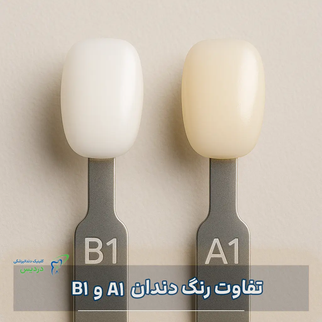 اگر در آستانۀ ترمیم، روکش، لمینیت یا حتی بلیچینگ دندان هستید، احتمالاً نام رنگهای A1 و B1 را زیاد شنیدهاید. این دو رنگ در سیستم کلاسیک انتخاب رنگ دندان (VITA classical A1–D4) جزو روشنترین انتخابهای «طبیعی» به حساب میآیند و تفاوتهای ظریفی در تهمایه و درخشندگی دارند که در نتیجهٔ نهایی بسیار اثر میگذارند. در این مطلب، با یک نگاه کاملاً عملی و بهروز، هم فلسفۀ نامگذاری و منطق علمی پشت این رنگها را روشن میکنیم، هم تفاوتهای کاربردی A1 و B1 را با مثال و معیارهای انتخاب مرور میکنیم تا تصمیمی دقیق، طبیعی و متناسب با چهرۀ خود بگیرید.
